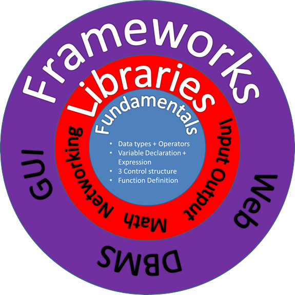For most CS students in China, it's important for them to successfully jump into the CS's philosophy (also called Computational Thinking in recent years). This course aims to illustrate the freshmen a whole picture covering the necessary topics which are helpful for them to understand CS with a framework (shown in right). |